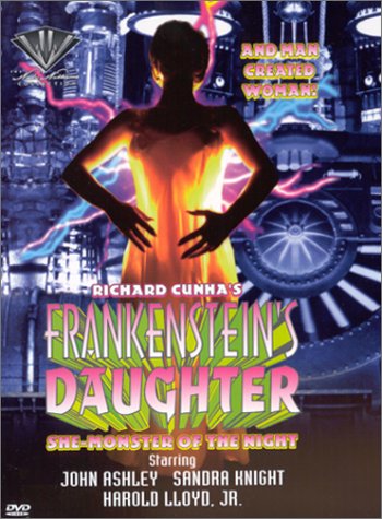 In the words of Bugs Bunny, "Monsters lead such interesting lives." That they do. And when they're not drinking blood, rising from the dead or trashing Tokyo, they seem to be doing what comes naturally: getting hitched and having a crop of kids. In "Frankenstein's Daughter," the Doctor's grandson continues with his infamous grandad's experiments and creates a hideous she-monster, a cross between a sumo wrestler, a porterhouse steak and the "brain" of a blonde bimbo, complete with a permanent wave down to her toes. An exploitation movie milestone in the monster offspring subgenre, "Frankenstein's Daughter" is the third of four drive-in classics crafted by producer Marc Frederic and director Richard Cunha in their late-'50s moviemaking heyday.